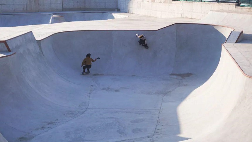 遠(yuǎn)處的碗池深度均勻,但是邊緣向內(nèi)延伸形成了一個(gè)Spine(梁)以及一個(gè)圓臺,想在這個(gè)場地內(nèi)發(fā)揮可沒有那么容易。